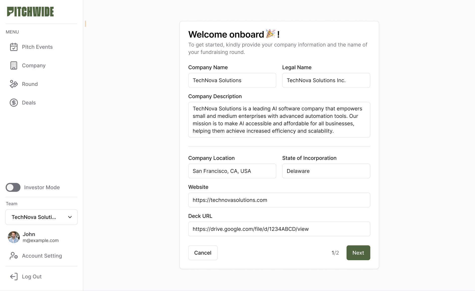 Join a growing community of startups using Pitchwide to create momentum, impress investors, and close deals faster.